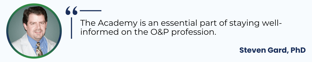 The American Academy of Orthotists and Prosthetists is the only professional association that represents the individual O&P practitioner. The Academy is the premier source of O&P knowledge and research disemination, providing professional resources, continuing education, and advocacy, including the largest annual conference geared specifically to the advancement of O&P professionals.